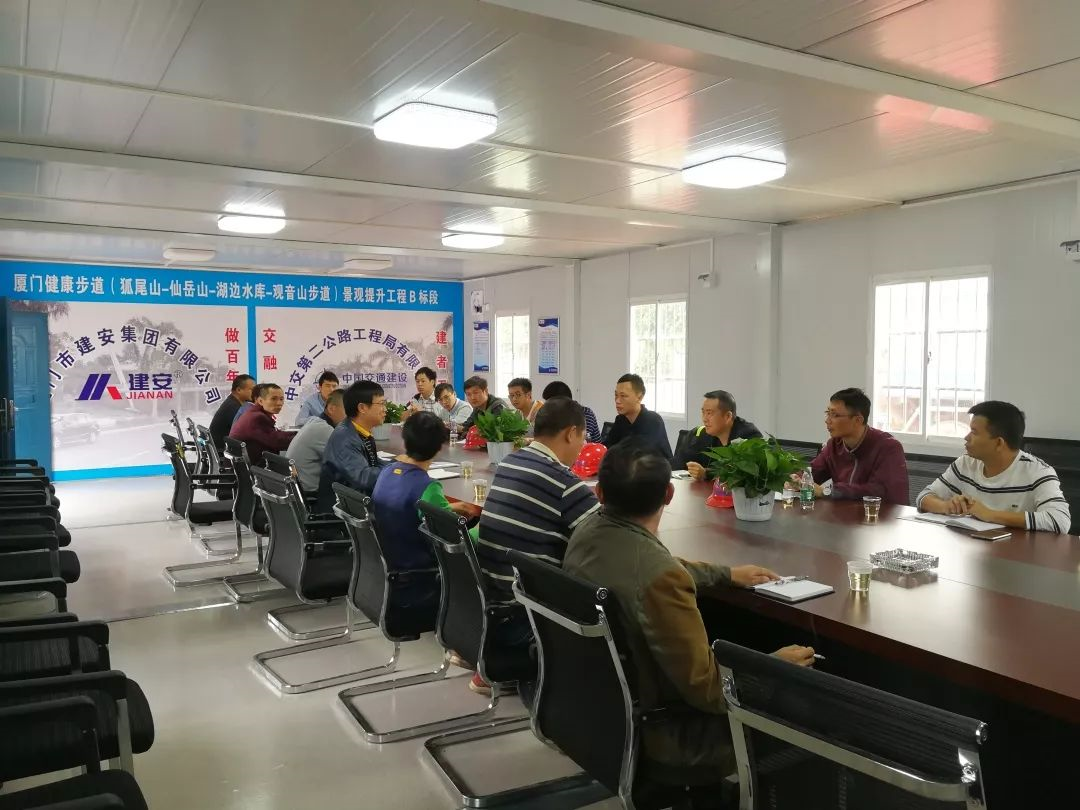 廈門(mén)健康步道預計明年10月底將全部建成投入使用。為確保該項目建設保質(zhì)按期完成,11月20日上午,健康步道景觀(guān)提升工程B標段推進(jìn)協(xié)調會(huì )在項目部召開(kāi),董事長(cháng)孫碧慶和安全技術(shù)部、質(zhì)量技術(shù)部、勞務(wù)部等相關(guān)部門(mén)負責人及項目現場(chǎng)管理人員參加會(huì )議。會(huì )議由工程副總沈夏磊主持。